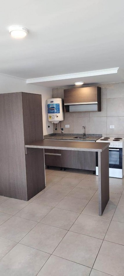 Hermoso departamento de un ambiente con cocina integrada. Ubicado en San Martín y Olazabal, en un cuarto piso en contrafrente abierto, lo que lo hace MUY luminoso.