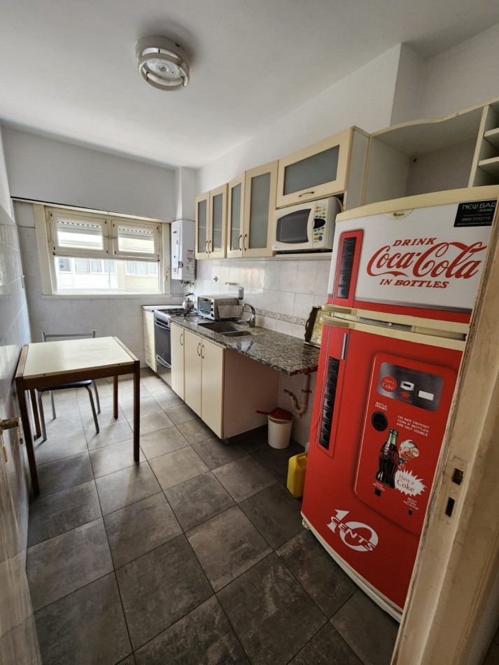 Cocina separada, muy luminosa como el resto del departamento y en excelente estado de conservación. Baño completo con bañera, también en impecable estado.